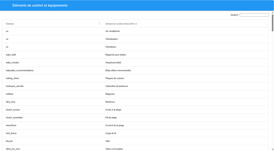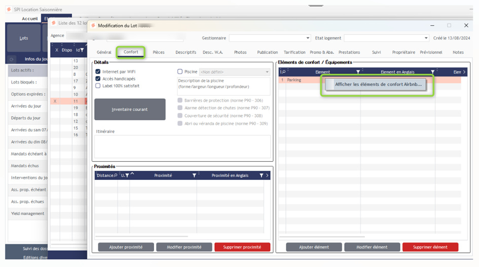 Sur la fiche lot, onglet Confort, cote éléments de confort/Equipements, si vous faites un clic droit sur un de vos éléments de confort, vous pourrez ouvrir une liste des éléments de confort compatibles avec Airbnb.