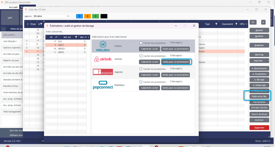 Vous pouvez publier sur une passerelle plusieurs lots en même temps sans avoir besoin de rentrer dans chaque de vos lots.