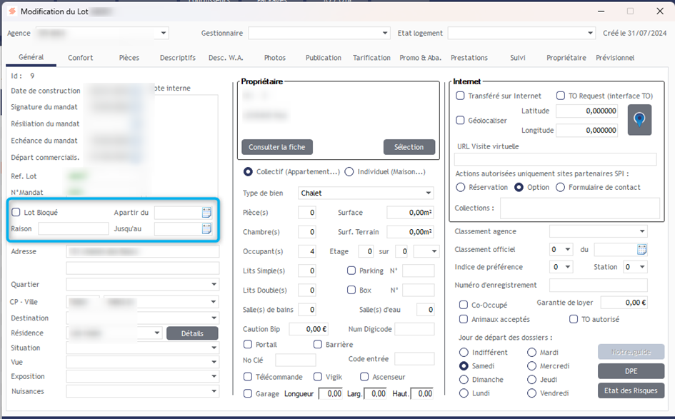 - Sur la fiche lot, vous pouvez bloquer le lot mais pour qu’une période