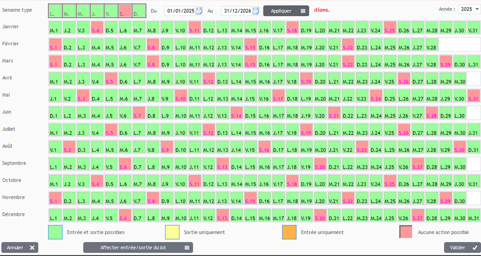 - Avec les entrées et sorties, vous pouvez bloquer les périodes que vous voulez pour toute l’année, mais attention, cela ne bloque pas la possibilité de faire des réservations sur le logiciel manuellement.