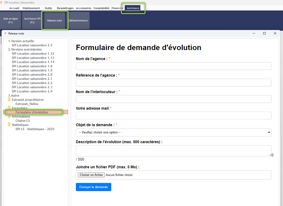 Dans le logiciel, allez dans le menu Assistance, Release note, puis cliquez sur Formulaire d’évolution. Décrivez précisément votre besoin ou idée, le service Développement l’analysera.