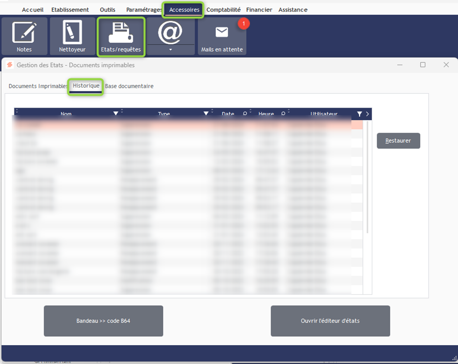 Vous pouvez le récupérer dans Accessoires / Etats, Requêtes / onglet Historique :