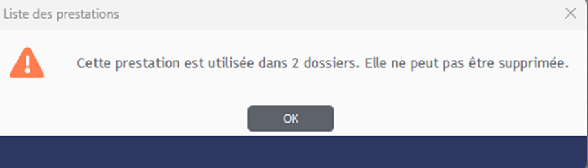 Vous voulez supprimer une prestation de votre liste et ce message apparaît :