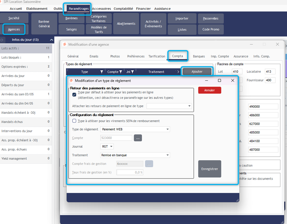 N’oubliez pas de paramétrer le paiement web, ainsi que de créer le compte paiement web sur le plan comptable.