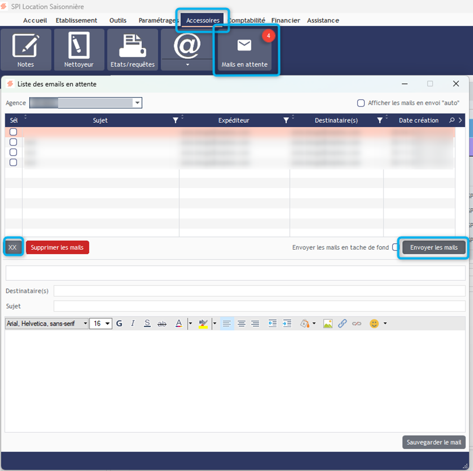 Toutes les sélections seront alors placées dans les mails en attente (onglet Accessoires).