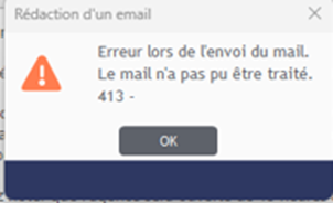 Lors de l’envoi d’un e-mail via la messagerie, si vous ne parvenez pas à l’envoyer et que ce message apparaît, cela signifie que le contenu de votre message est trop lourd. Cela peut être dû à des pièces jointes volumineuses ou à une image trop grande dans votre signature.