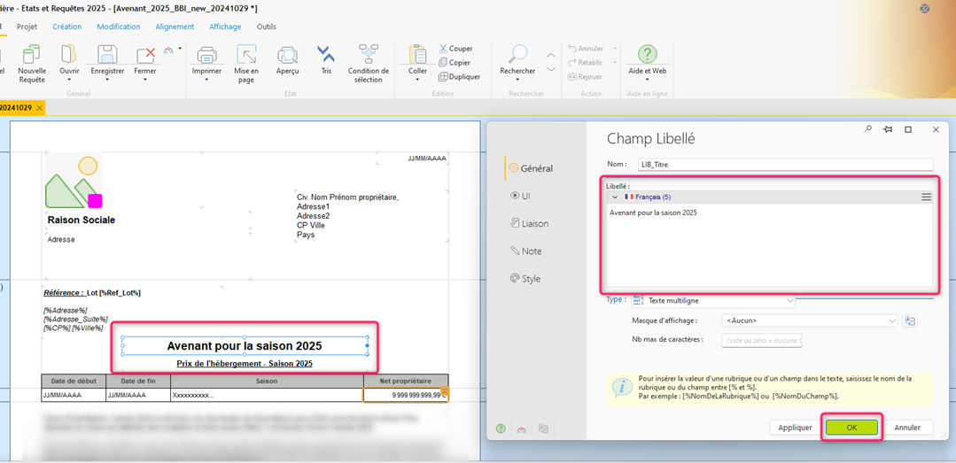Une fois les modifications effectuées, cliquez sur « OK » pour valider.