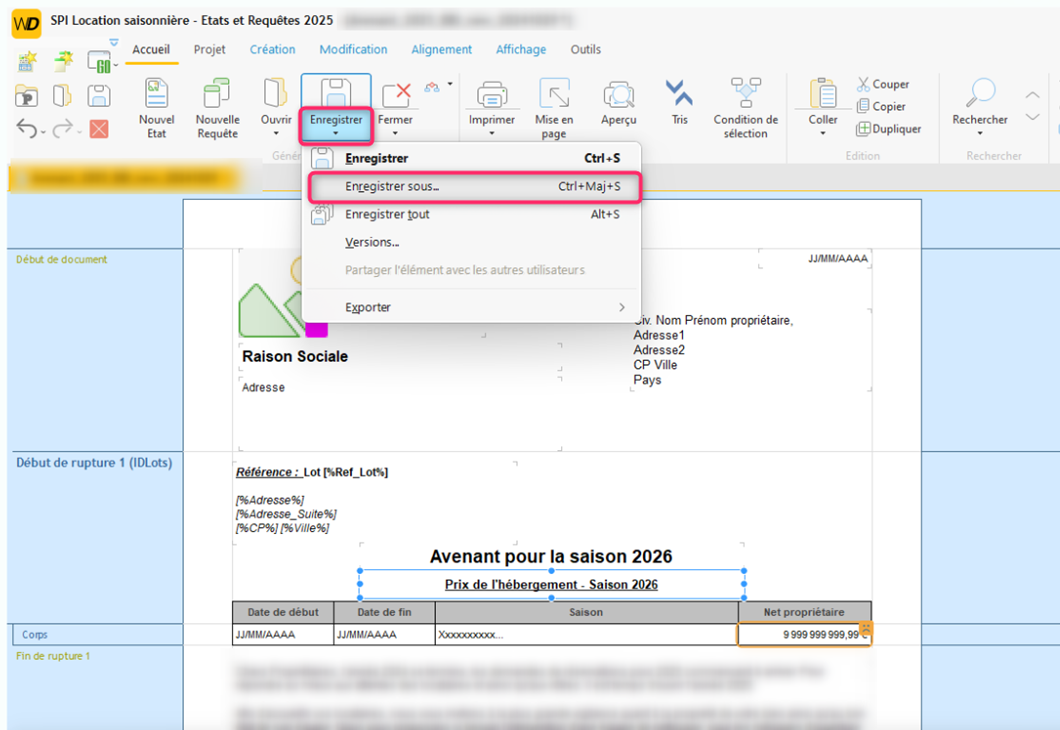 Pour cela, cliquez sur la petite flèche à côté du bouton "Enregistrer", puis sélectionnez "Enregistrer sous". Cela vous permettra de choisir un nouveau nom et un emplacement pour le fichier modifié.