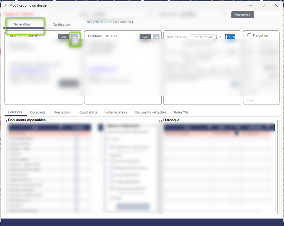 - Cette action rendra à nouveau actif le bouton situé dans l’onglet Généralités, à côté du lot (initialement grisé).