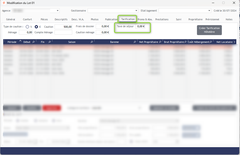 Cependant, dans la fiche lot, onglet Tarification, une case intitulée « Taxe de séjour » est également présente.